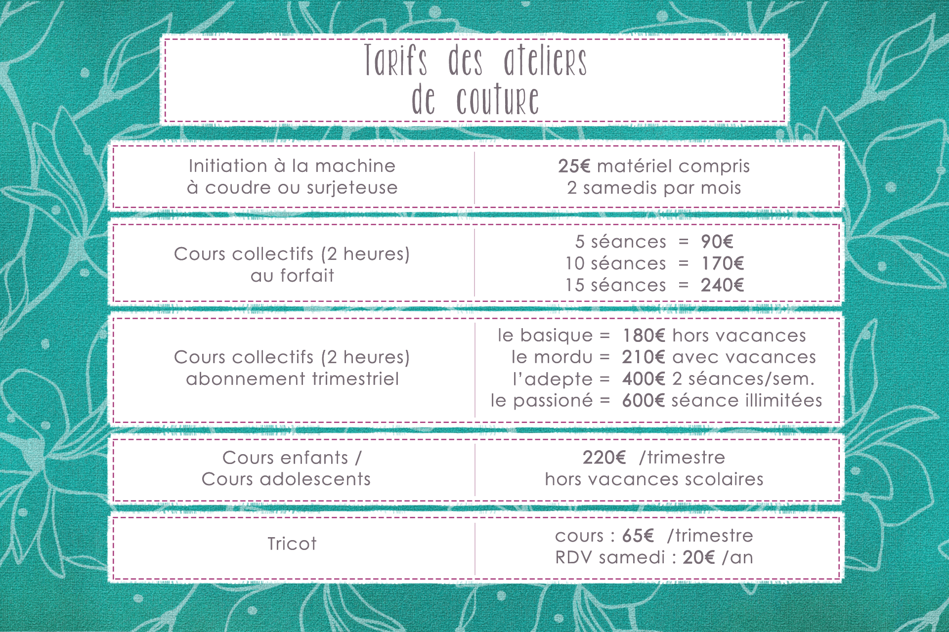 Attention ! Pour les cours aux forfait, tout désistement doit se faire une semaine à l'avance.
